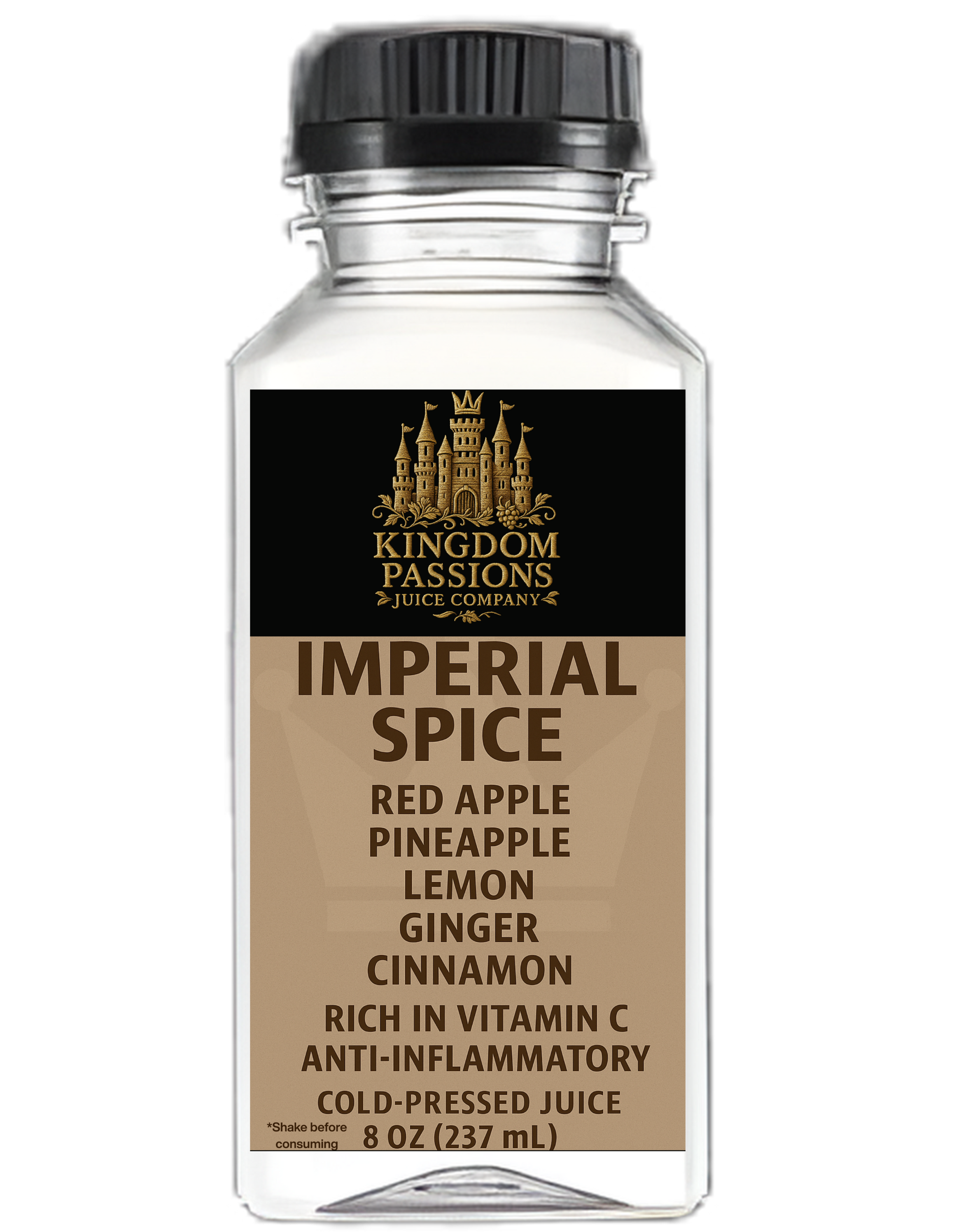 Unleash the firepower of ancient wellness with Imperial Spice, a bold and warming blend that energizes, protects, and restores. Made with a powerful mix of red apple, pineapple, lemon, ginger, and cinnamon, this anti-inflammatory elixir is your royal defense against daily stress and sluggishness.